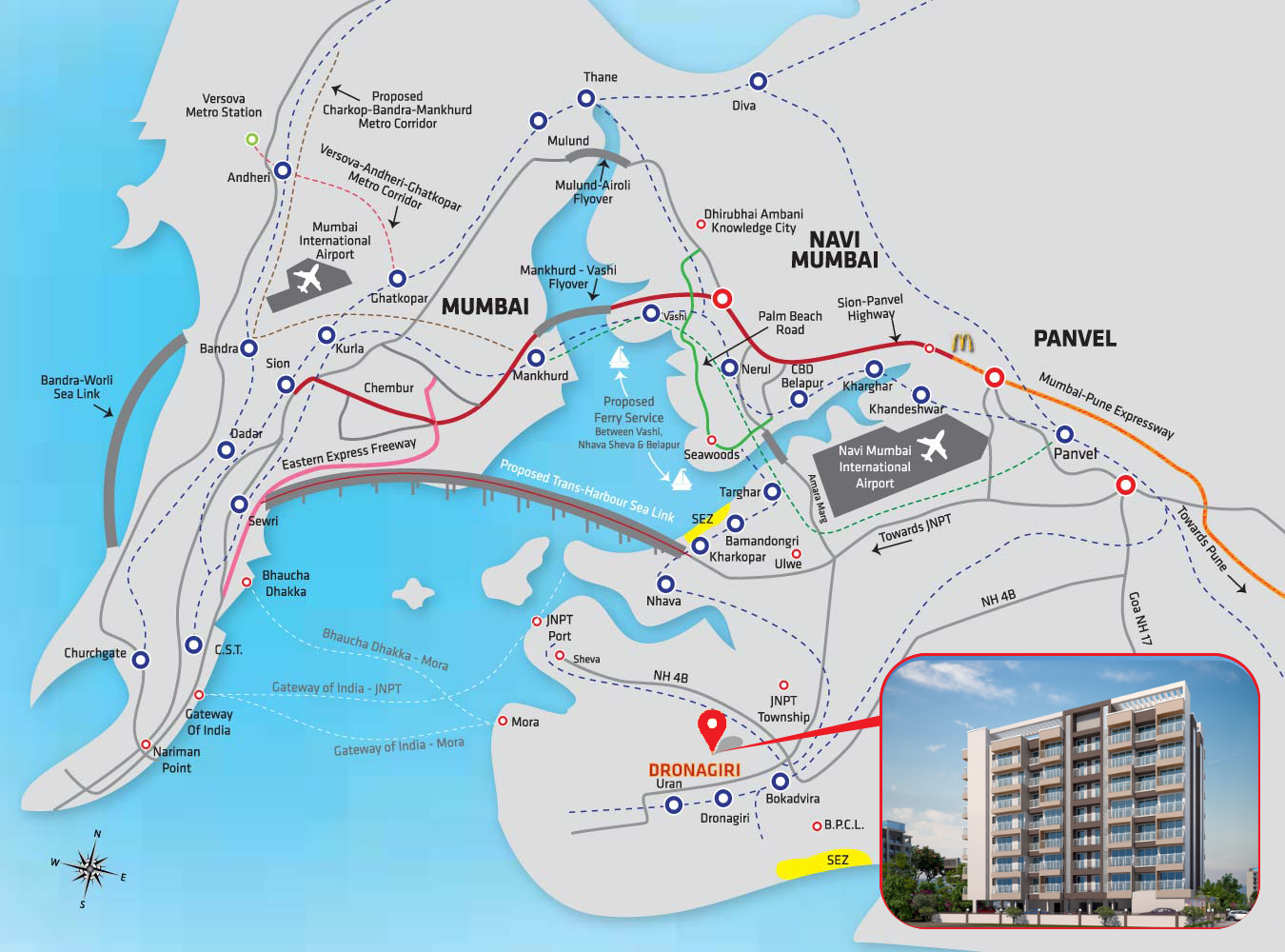- 10 Mins. drive from Atal Setu Mumbai Trans Harbour Link connecting Dronagiri to South Mumbai.